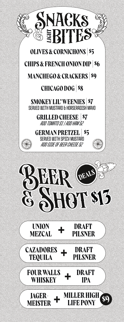 This menu suits moments when you want to settle in with friends before or after an event, enjoy lively conversations, or simply appreciate a calm spot to unwind. The range of drinks and light fare invites you to savor the experience at your own pace, making it a place where good company and simple pleasures naturally come together.